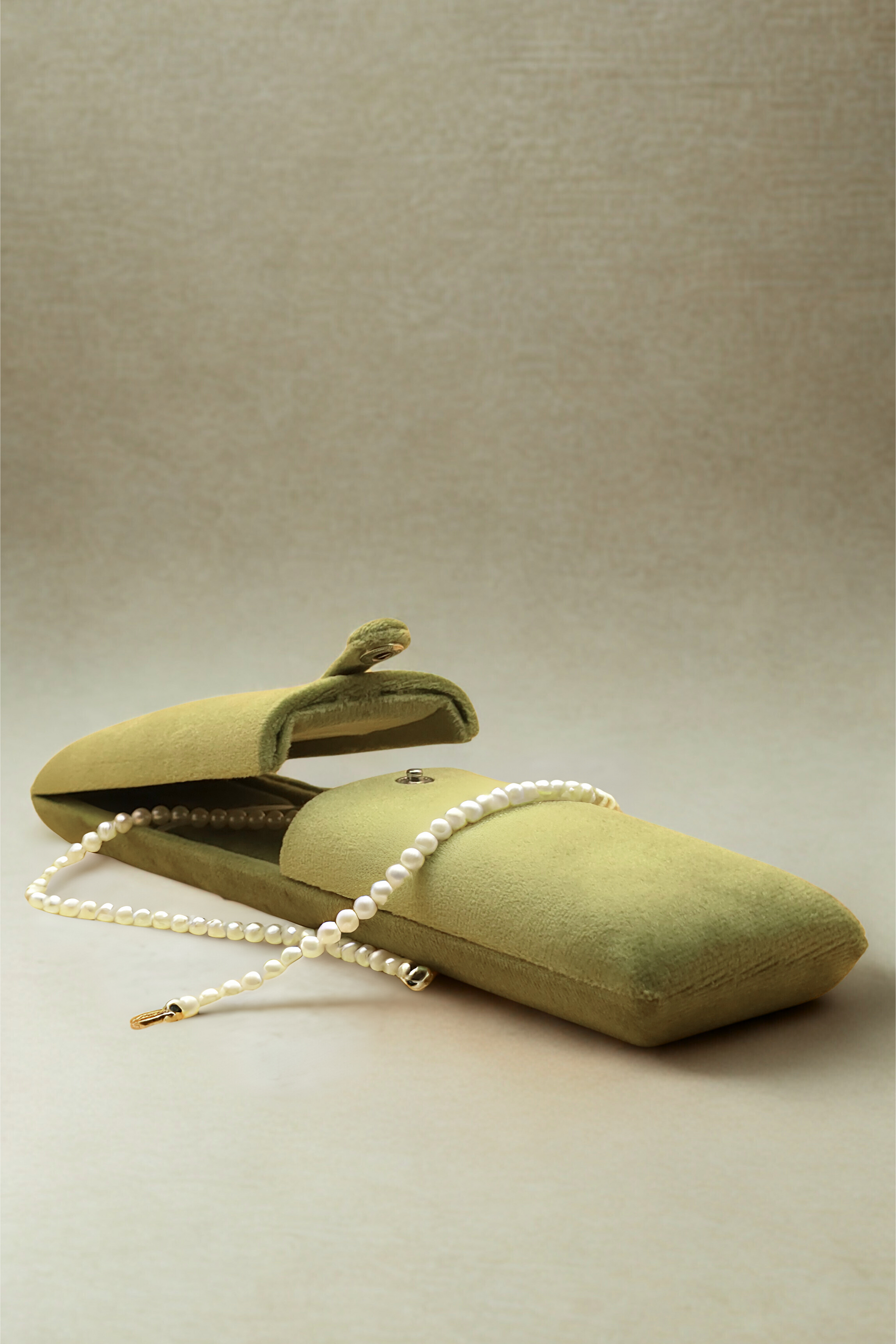 Crafted in a soft velvet-satin exterior, this box features a smooth matte finish that feels refined while gently protecting your jewelry. The structured rectangular shape opens to a softly padded interior, designed to hold necklaces and layered pieces comfortably without bending or tangling.